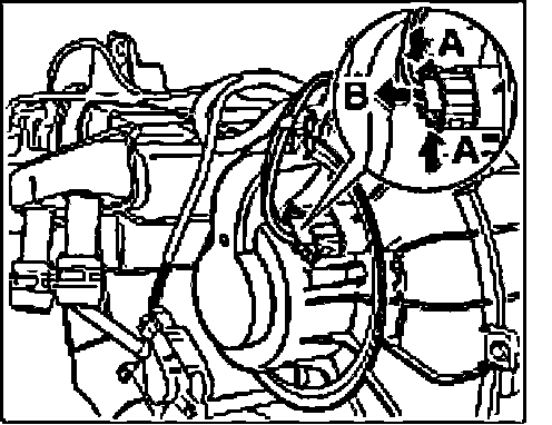 2. Press in plug -arrow A- until locking tabs -B- are felt to engage.