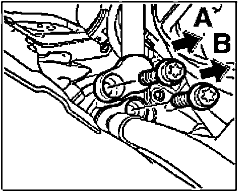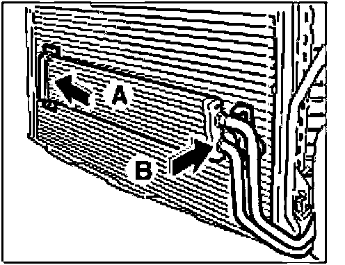 1. Unscrew the fastening screws on the condenser's air conditioning lines, withdraw the lines -A, B- and lock air seal.