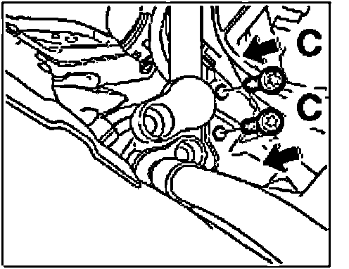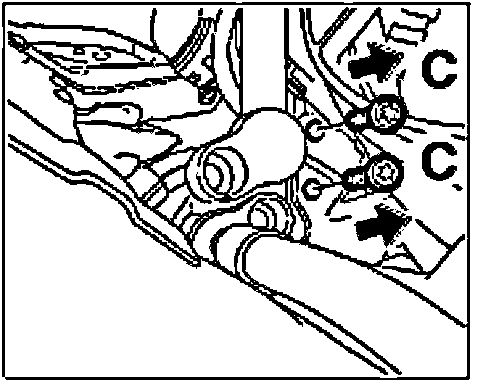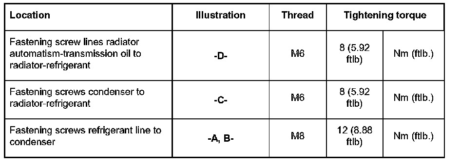 6. Screw in the two fastening screws -C- condenser to radiator-refrigerant (to the left). Refer to tightening torques.