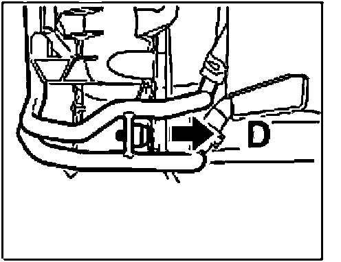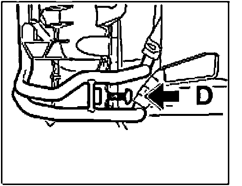 3. Unscrew the fastening screw -D- (to the left) radiator-steering hydraulic oil to radiator-refrigerant lines.