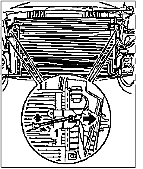 4. Lift the two fuses on the radiator automatism-transmission oil and the two fuses on the air conditioning condenser with a screwdriver -1- and push downwards -arrow-.