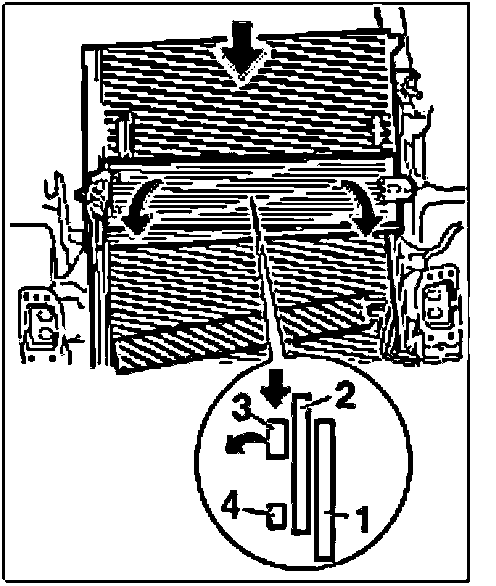 2. Carefully insert the condenser -2- between the radiators -1, 3, 4- making sure that the other radiators are not damaged by the edges and corners of the condenser.