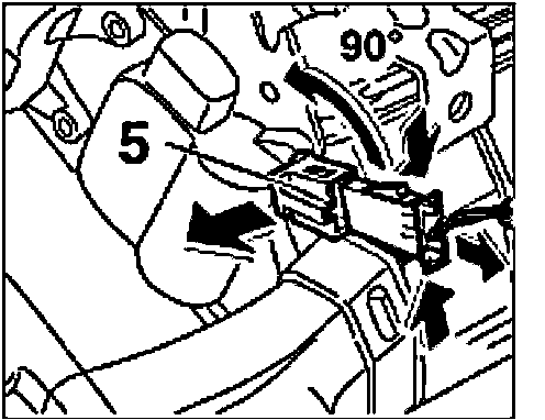 b. Slide in the temperature sensor -5- into the heating/air-conditioning unit and turn 90°.