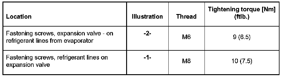 - Before the expansion valve is re-installed, the O-rings of the refrigerant lines must be checked for damage and replaced if necessary.