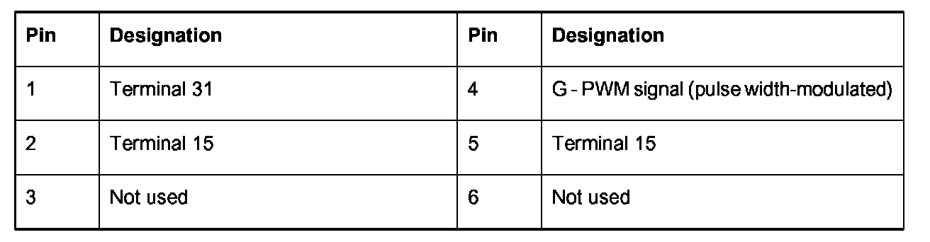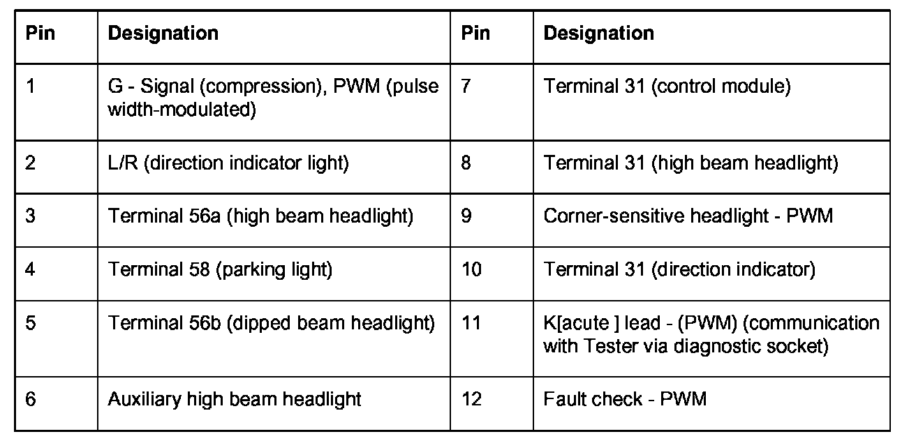 Connector assignment for headlight beam adjustment, HBA (Xenon)