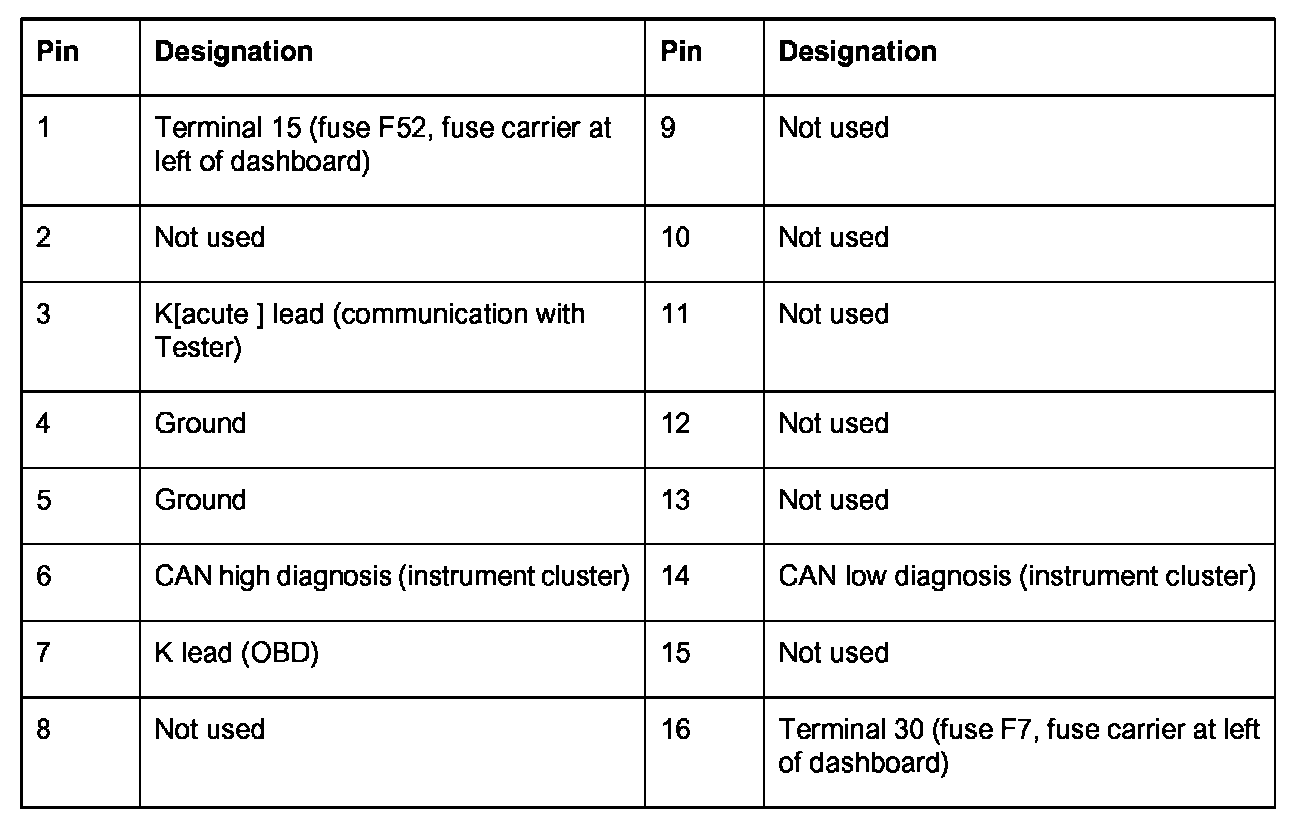 Diagnostic socket, 16-pin