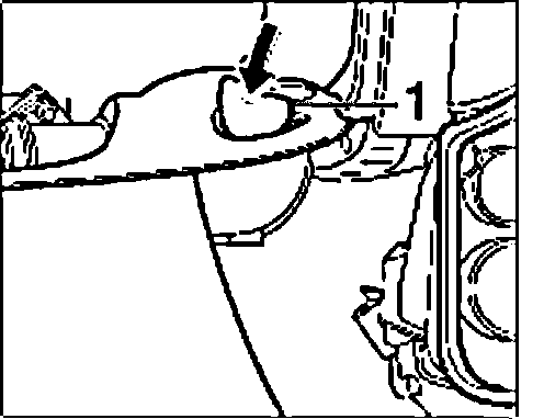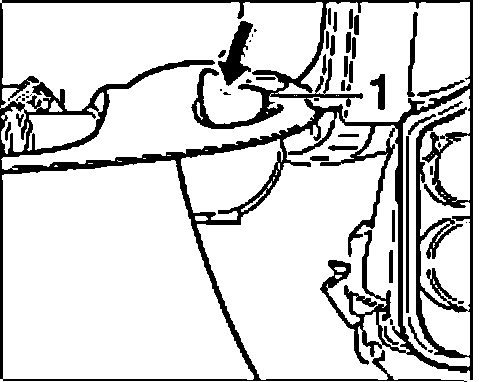 1. Press down the cover "1" in the engine compartment and remove it.