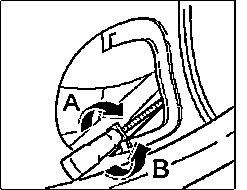 6. Check auxiliary high beam headlight and, if necessary, adjust the side setting using "A" and "B".