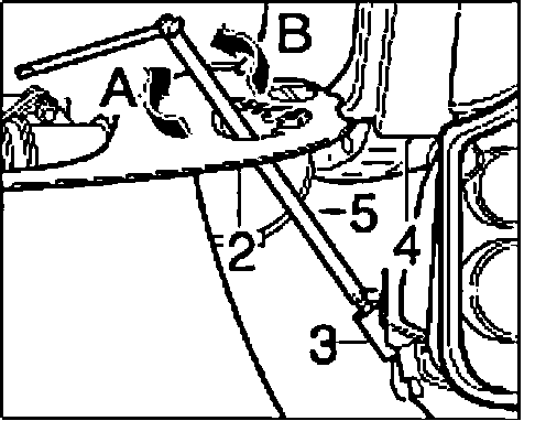 2. Press the headlight towards the rear and, at the same time, turn the socket wrench "5" "arrow B". The headlight locking mechanism must lock in audibly and noticeably.