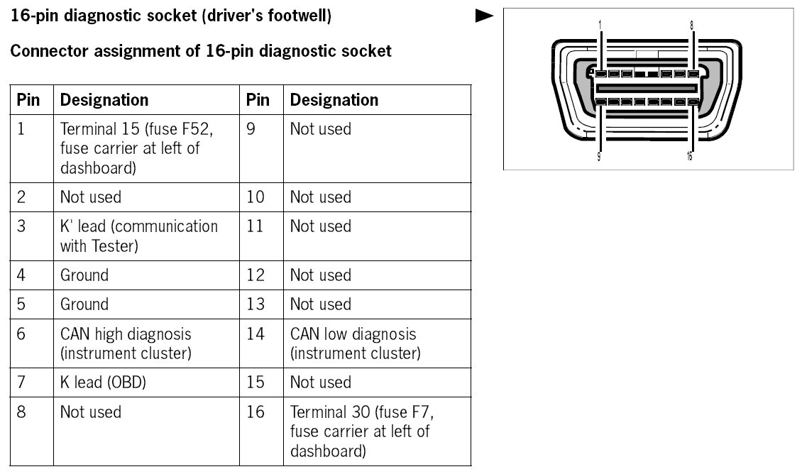 - Diagnostic socket: Pin 3