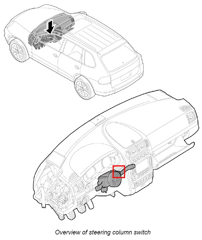 - When removing and installing steering column switch, the steering wheel must be pulled off in the straight-ahead position. This ensures that the airbag contact unit is locked in the central position.