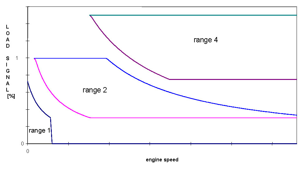 The mixture adaption has 3 adaption ranges. The learning integrators are thus activated in different speed and load ranges. The deviation of the Lambda controller from it's neutral value (1.0), is "learned" in one of the integrators at idle, at medium load / speed, and at very high load / speed.