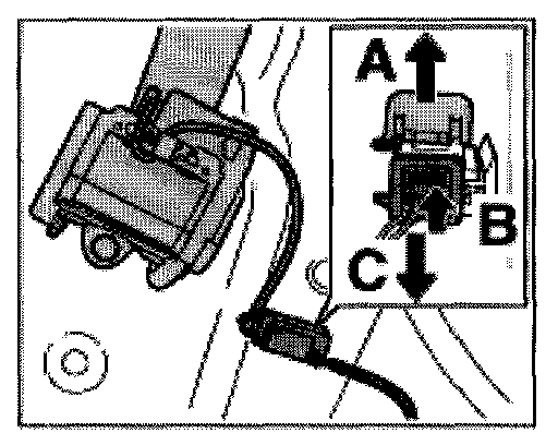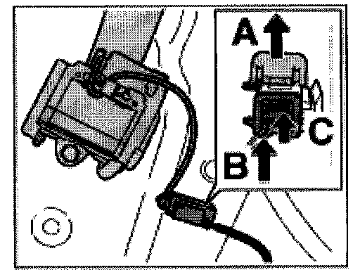 7. Release connector -arrow B- and pull off -arrow C-.