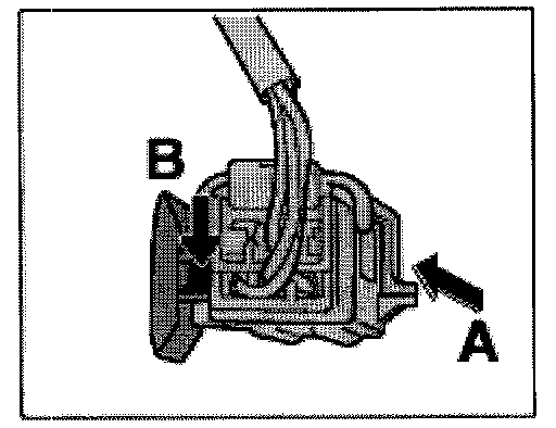 8. Release connecting socket -arrow A- and pull it off the clip -arrow B-.