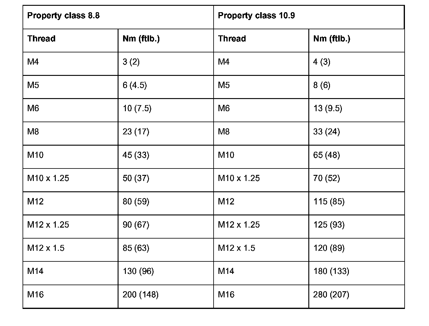 ^ If 8.8 screws are to be installed, the screws must be replaced.