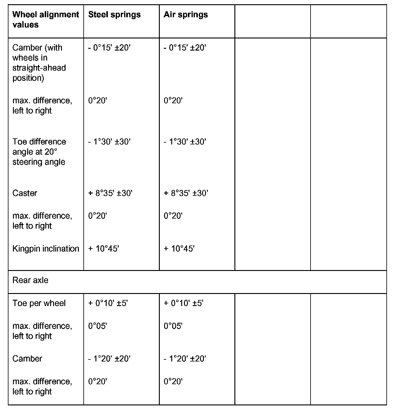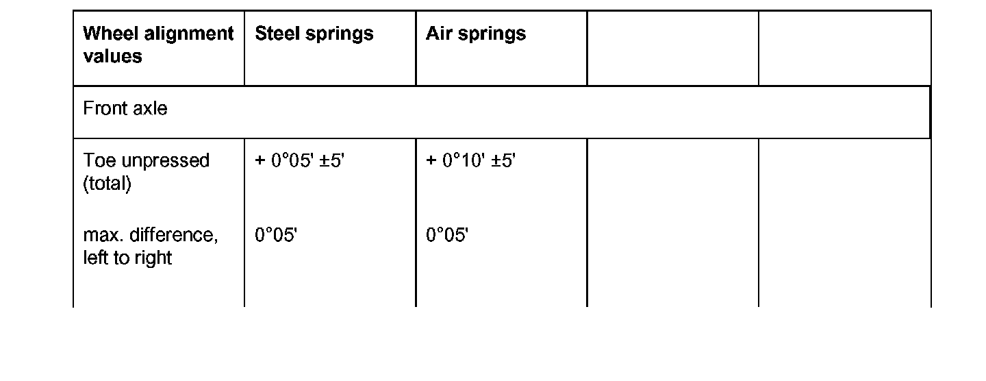 ^ The toe-difference angle value is also influenced by the vehicle height! For this reason the measured result must be evaluated accordingly! No action is necessary in the case of small deviations from the toe-difference angle required value, as long as the value to the right and the left is almost the same!