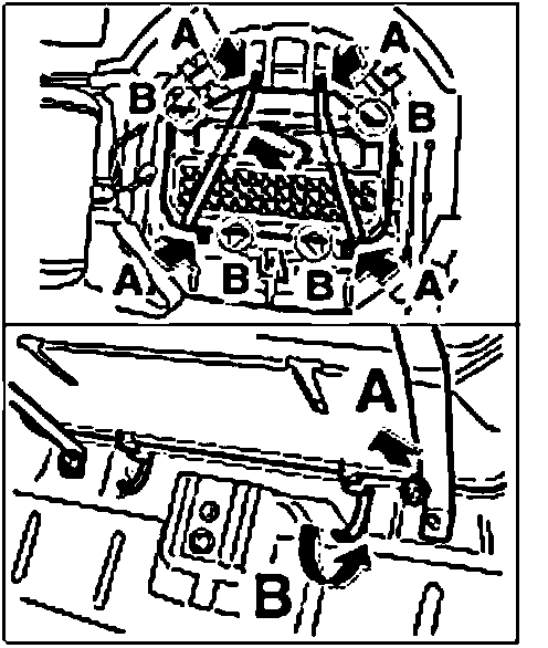 b. -B- Unclip the four fastening clips using a screwdriver.