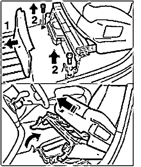 3. Flap the section of the carpet forward and remove the two fastening screws "2".