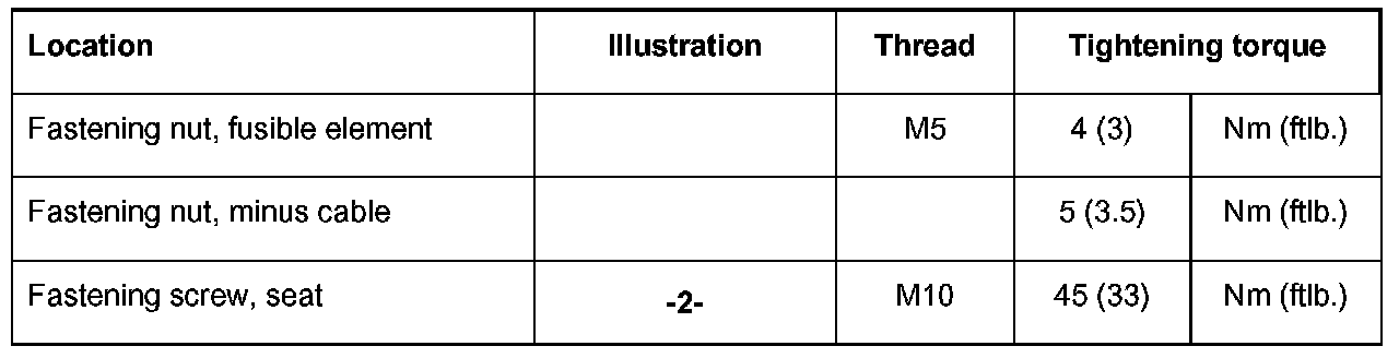 1. Use a new fusible element and insert new fastening screws. Refer to 'Tightening torques' Tightening torque 4 Nm (3 ftlb.).