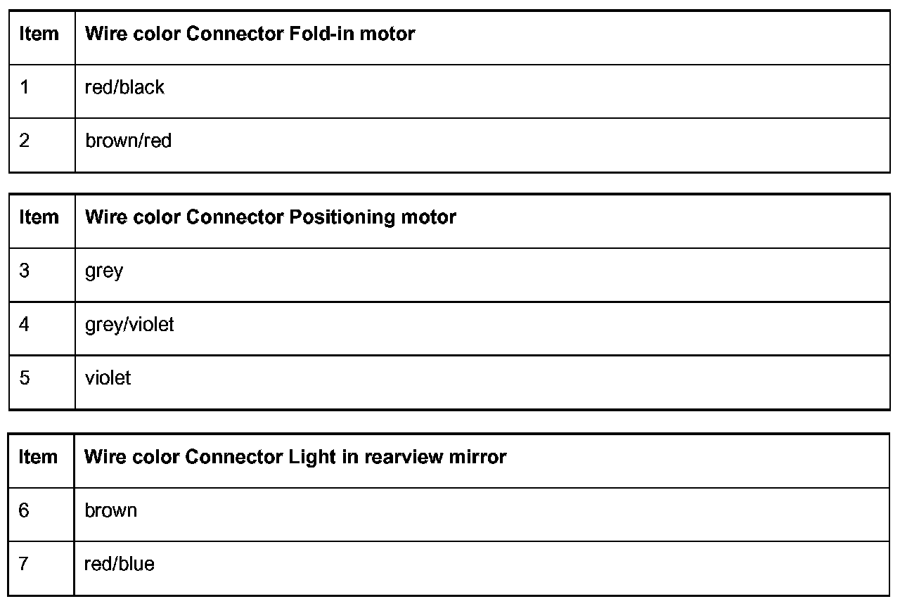 - The wires "6" and "7" are only available on vehicles that are equipped with a light in the rearview mirror.