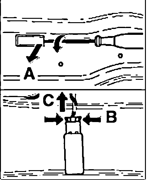4. Squeeze plug lock "arrows B" and pull off the plug "arrow C".