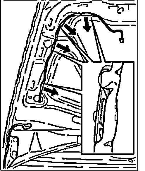 9. Push wiring harness into the bonnet reinforcement "arrow A".