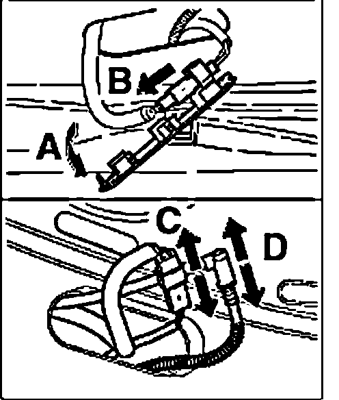 14. Unclip plug connection "arrow A" and pull it forwards out of the retaining strap "arrow B".