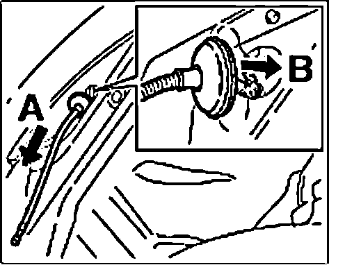 6. Remove rubber sleeve on the bonnet. To do this, pull the wiring harness at the rubber sleeve to the side "arrow A" until the rubber sleeve is released from the bore "arrow B".