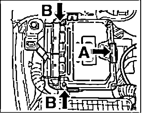 13. Remove DME control unit in a forward direction "arrow B" and place it on the radiator tank.