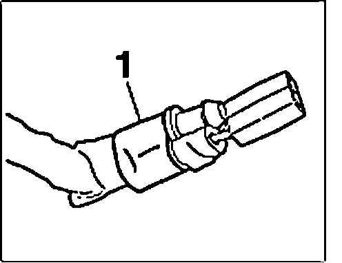 - Fasten the plugs of the heatable spray jet to the water line with adhesive tape "1" to make it easier to push through to the windscreen washer nozzles. After pushing through, remove the adhesive tape again.