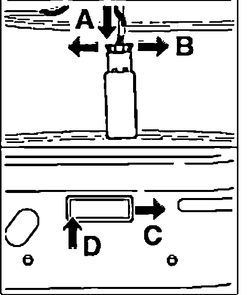 18. Insert engine compartment light into the bonnet "arrow C" and press it in "arrow D" until it is felt to engage.