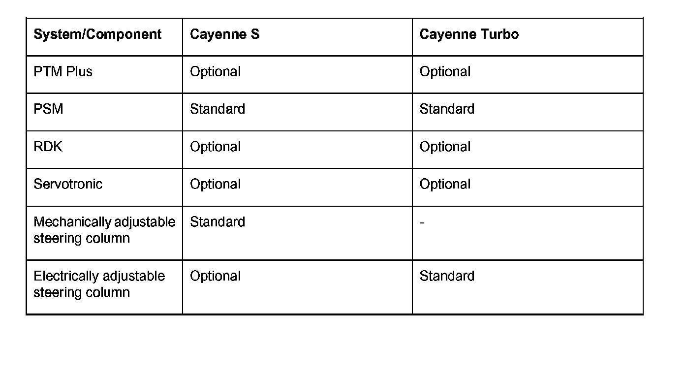 The following systems are used in both the Cayenne S and Cayenne Turbo: