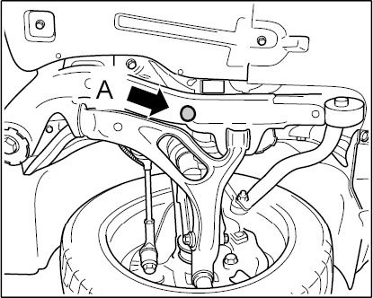The distance (middle of wheel) between the road (wheel contact area on measuring platform) and the measuring point -A- on the axle support is measured.