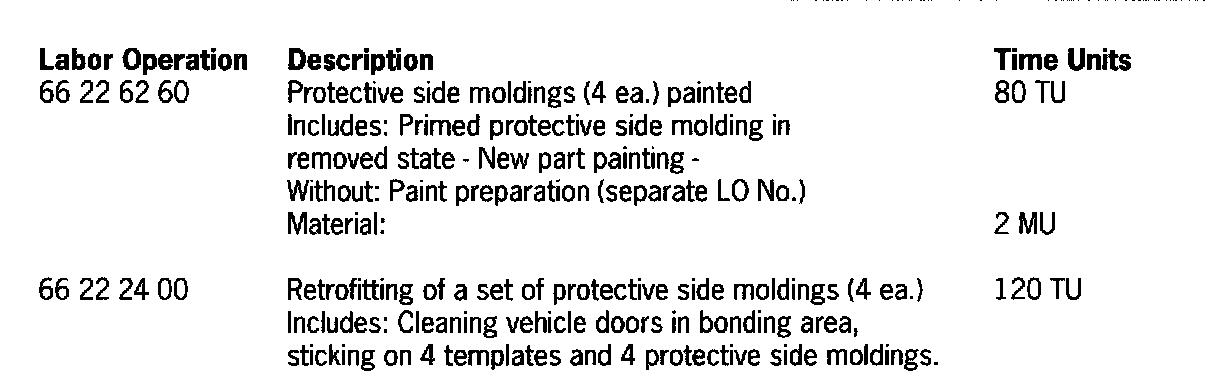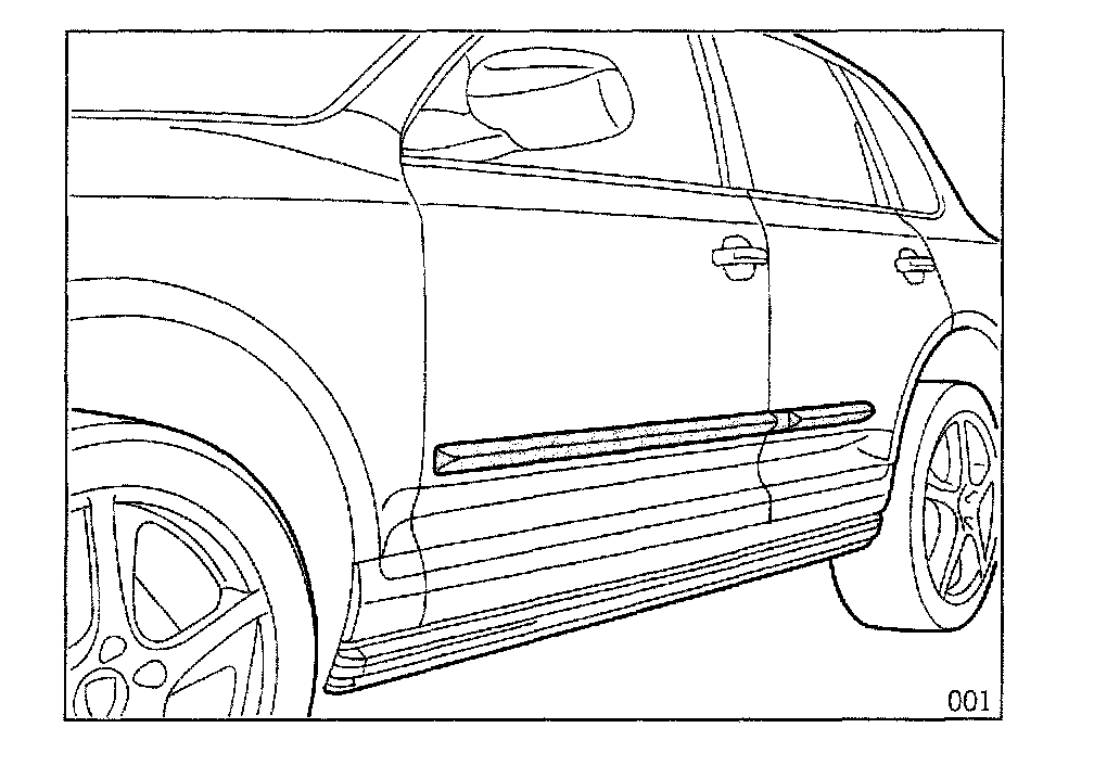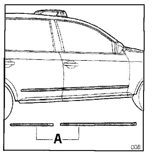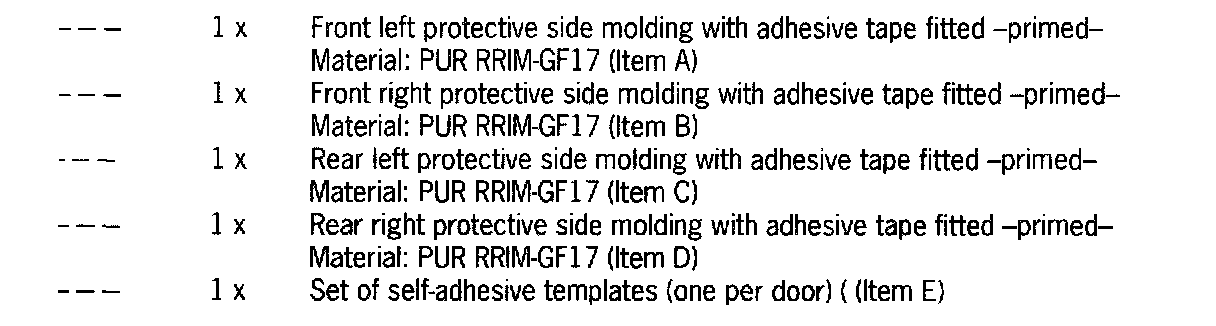 The description of retrofitting refers to the right side of the vehicle. Proceed accordingly when fitting the left protective side moldings. The door gap dimensions must be checked and, if necessary, adjusted before beginning the work. The protective moldings are generally delivered primed.