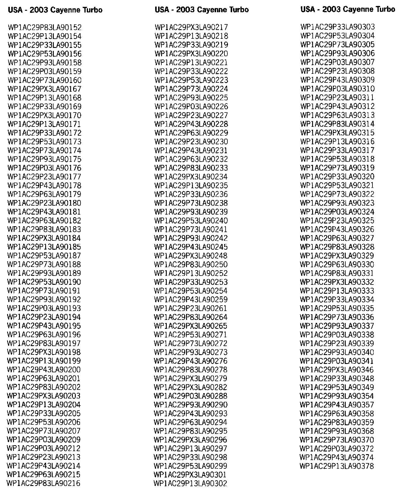 Very Important! Not every vehicle in the below listed range may be affected. Use the ranges below as a general guideline