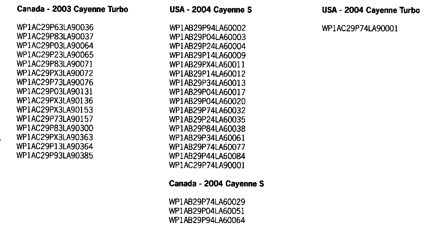 Therefore, we ask that the affected vehicles listed below have their air-conditioning regulator replaced during the Porsche Owner's next visit to your workshop.