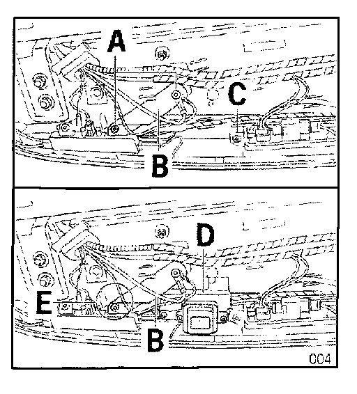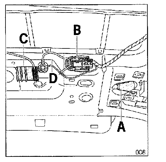 4.10 Route antenna lead at the side along the rear lid hinge through the plug holder (B) to the holder (C).