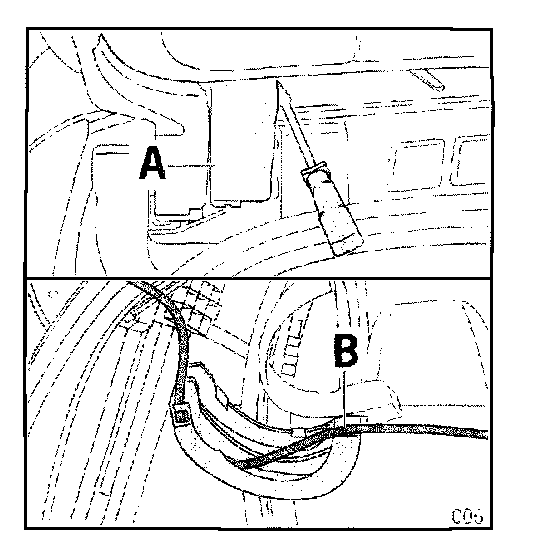 4.2 Position antenna lead (B) with rubber grommet and secure in position.
