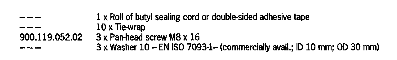 - top bracket: 3 x Torx flange screw; M8 x 30 (Figure 009, top);