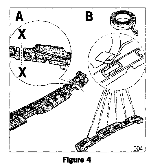 2.1.5 Stick on several strips of double-sided adhesive tape or butyl sealing cord to the underside of the foam part (Item B).