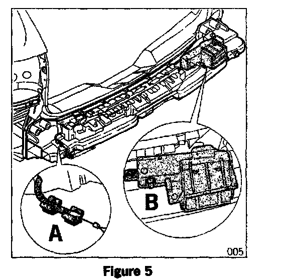 4.1.4 Feed wires through the hole in the floorpan (right D-pillar; Item C in inset of Figure 011) to the outside.
