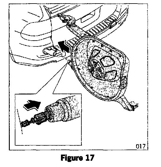 4.2.1 Feed 10-pole connector through the empty hole (area of rear left wheel well; inset in Figure 013) into the passenger compartment from outside.