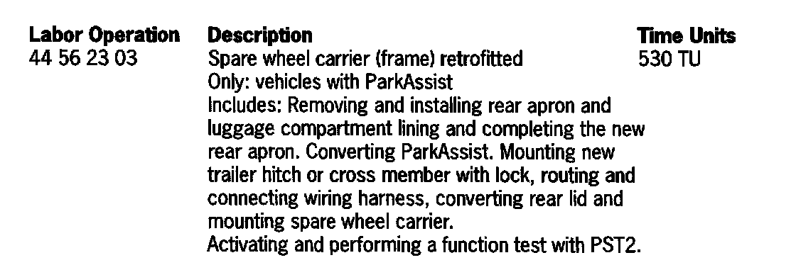 The spare wheel carrier is also available factory installed option when ordering a new vehicles under the I No. "1G3".