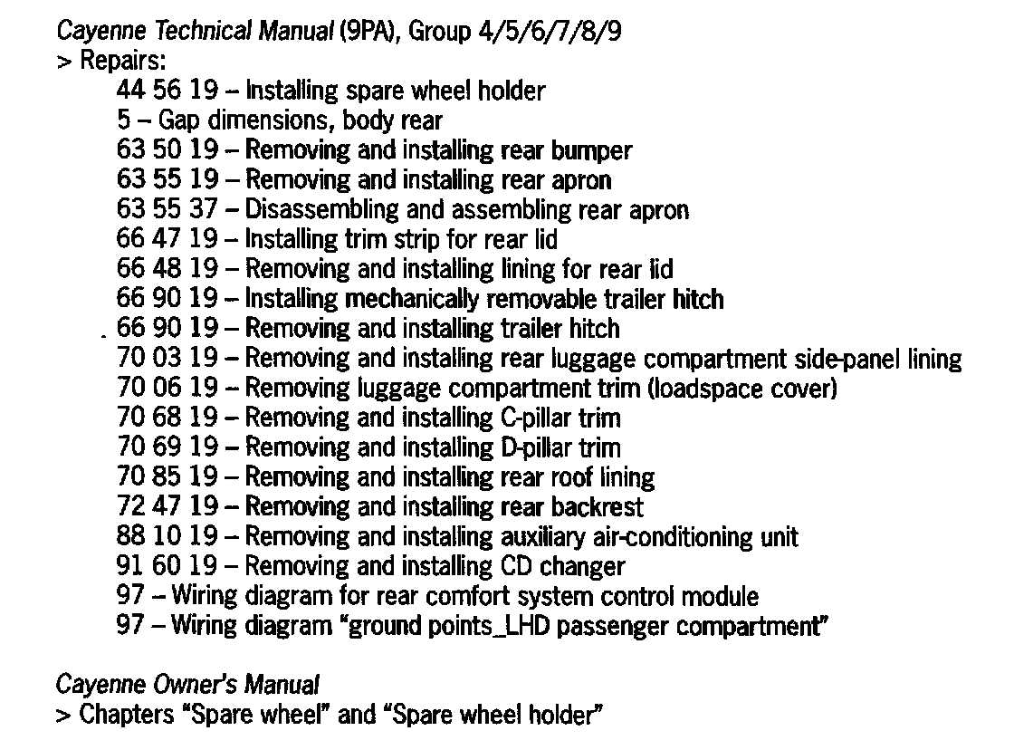 > Observe instructions on this subject in the Cayenne Owners Manual.