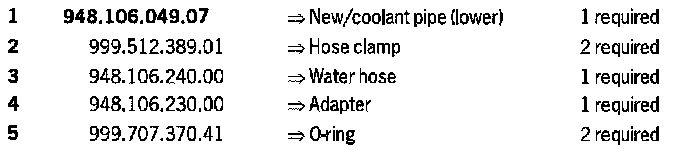 - Both coolant pipes (lower and heater) must be replaced at the same time with new coolant pipes made from aluminum (--> Figure 1 and --> Figure 2).