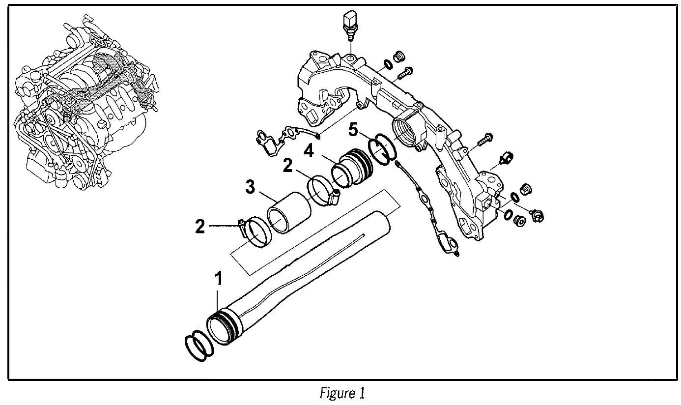 - The engine dose not need to be removed, because of the new, split aluminum coolant pipes, for the lower coolant pipe (--> Figure 1) to be replaced.