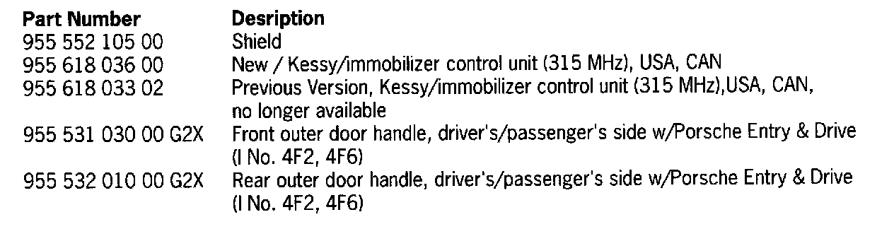 Complaints related to the Kessy system, "Porsche Entry & Drive" (I No. 4F2, 4F6)
