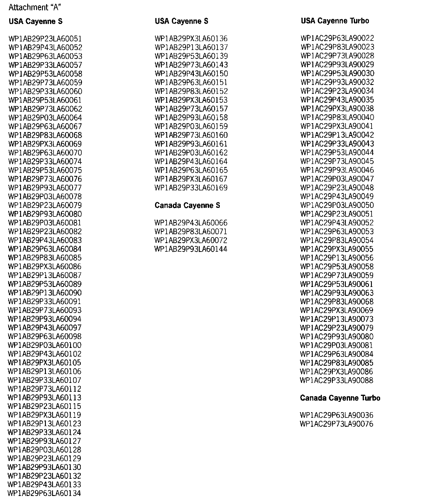 Refer to Attachment "A" to determine if a particular vehicle is eligible for this service action. Alternatively, the VIN can be checked in the Porsche e-DCS/WWS for confirmation of an open service action.