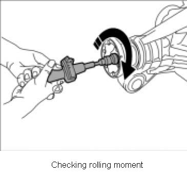 4. Check rolling moment with special tool torque screwdriver for measuring friction moment NR.89.- Rolling moment: 2.0 ftlb. -0.2 ftlb. +0.2 ftlb.