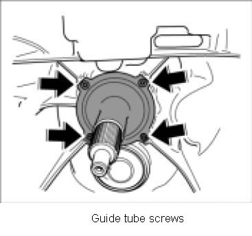 2. Remove guide tube for release bearing. To do this, unscrew four fastening screws -arrow-.